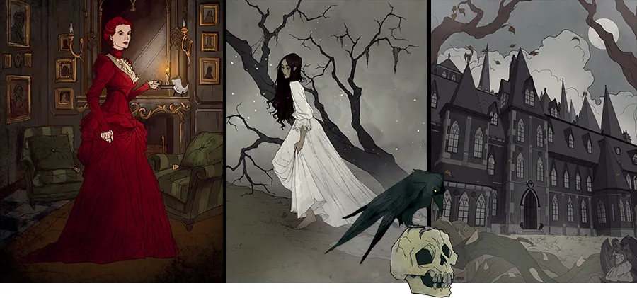 On y retrouve l’influence des récits d’Edgar Allan Poe : son goût pour les demeures décrépites, les spectres mélancoliques, les héritages maudits et les secrets de famille inavouables.