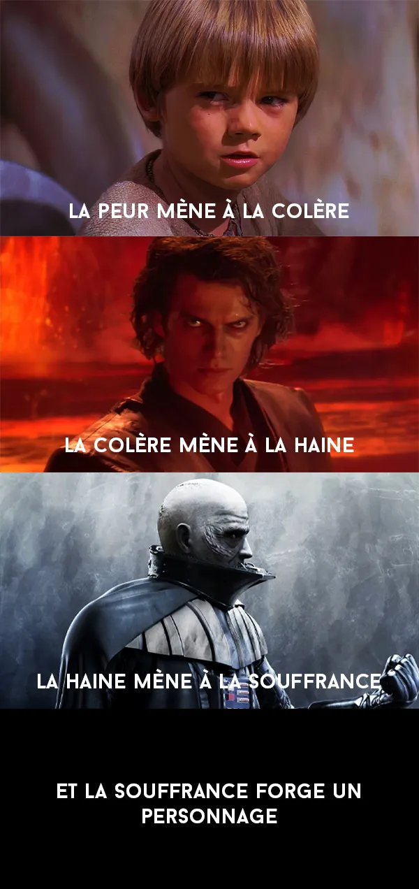 Un personnage cherche à atteindre un but -> des obstacles se dressent sur son chemin -> cela créer du conflit -> donc des émotions.