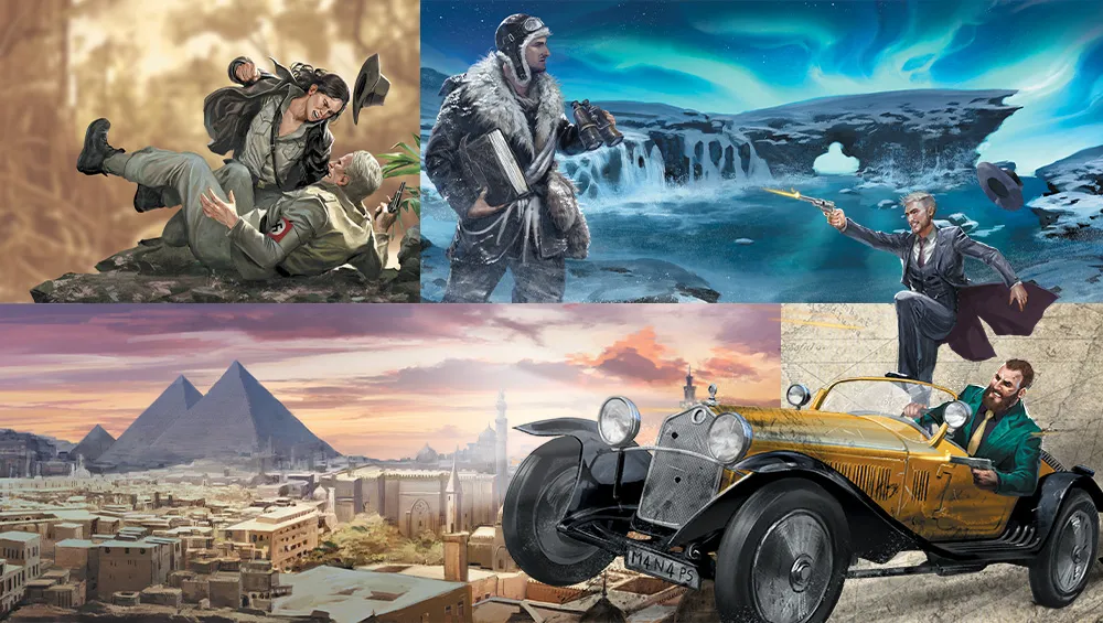 Dans cet ouvrage, vous trouverez tout ce dont vous avez besoin pour évoluer à l’époque des photographies sépia de l’entre-deux-guerres, communément appelée l’Âge d’or. Si vous voulez partir pour des voyages similaires à ceux de vos héros d’enfance, faire claquer votre fouet comme l’aventurier au chapeau, montrer à cette momie que vous n’êtes pas là pour vous faire piétiner ou traquer cette tablette pour comprendre ses mystères, vous êtes à la bonne période. L’Âge d’or a beaucoup à offrir à ceux qui ont les tripes de l’explorer. Si partir chasser des Trésors et combattre des Rivaux et leurs Sbires ne vous suffit pas, vous trouverez dans ce livre des manières d’ajouter à vos aventures des adversaires aux pouvoirs légendaires. Oh, et oubliez les événements étranges et mystères insignifiants dont vous avez entendu parler en 1999. À l’époque de l’Âge d’or, le surnaturel est présent en force et il faut le prendre au sérieux. Je parle de rites magiques, de monstres maléfiques, d‘immortels contrôlant les quatre éléments, de dieux anciens et de toute une série d’autres créatures se relevant de leur tombe après quelques millénaires juste pour gâcher votre journée. Ah, vous avez déjà peur ?