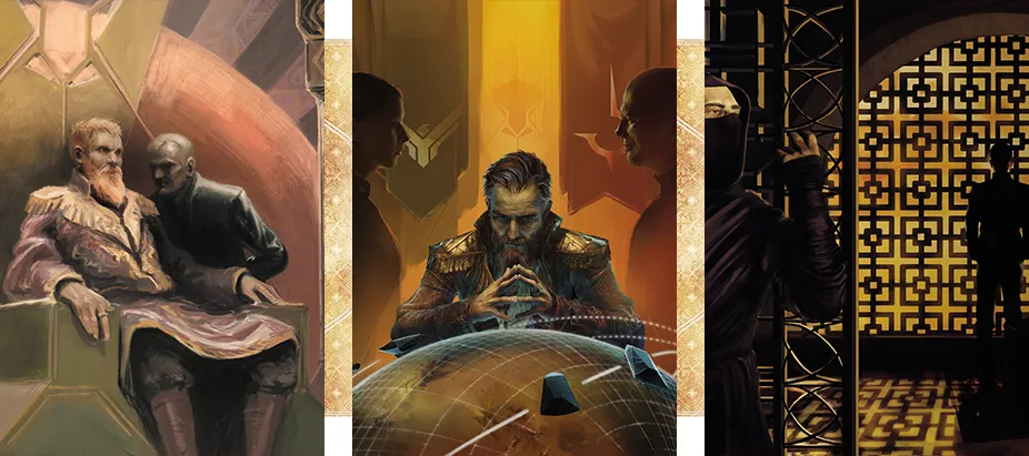 Il n’existe pas de plus grand pouvoir que celui de l’Empereur et pourtant, plus il amasse puissance et richesses, plus son ambition croît. S’allier à la Maison Corrino revient à s’allier à la force qui contrôle l’Univers connu. Quand vous bénéfificiez des faveurs du souverain, vous pouvez exercer une influence incommensurable, à condition de ne jamais oublier qui vous l’a accordée.