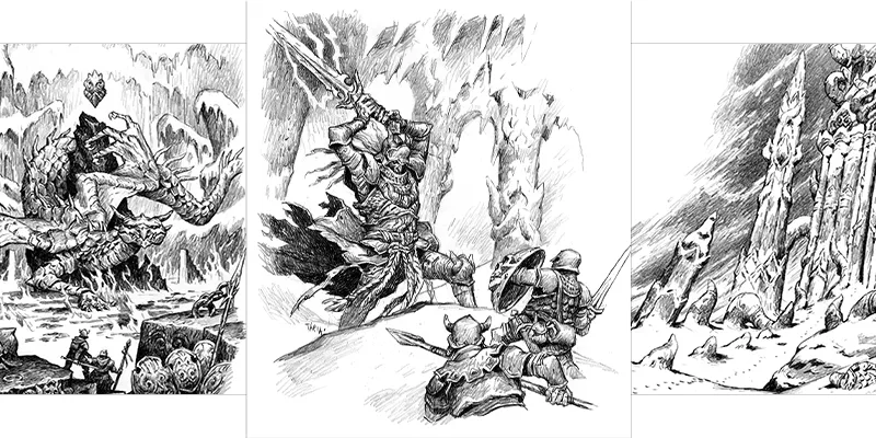 Dans les profondeurs insondables qui se cachent sous la mante du verglas résident des créatures qu’on évoque dans des récits archaïques. Elles gardent des reliques qui procurent une puissance inimaginable, même dans les rêves les plus fous, des trésors susceptibles de détruire les Désolations de Givre s’ils venaient à être découverts.
